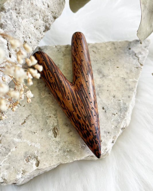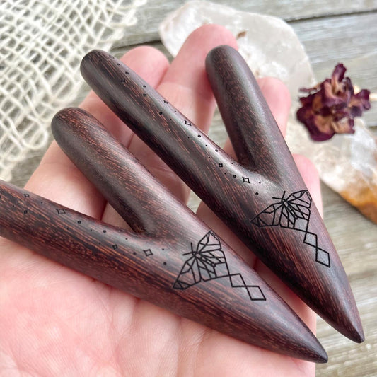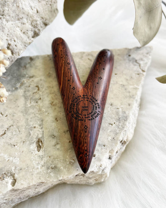 For a lighter weight wood our Coconut Kuripe is most popular, and our Tamarind Wood Kuripe is most liked for it's denser weight. The heart-shaped kuripes have a wider angle than our classic shapes.