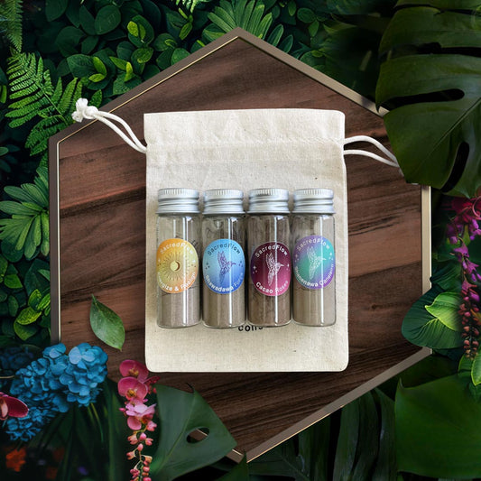 Our Curated Hapé Bundles are created to take the guess work out of selecting Hapé blends on your specific journey. We have a selection of Curated Bundles, specially created for you, designed for what you're working through. Whether it's to connect to spirit, release trauma, loss & heartbreak to clearing energy, bringing in self love and creating new beginnings, we have the right curated bundle for you.