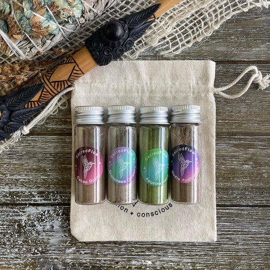 Hapé Bundles offer you an opportunity to try a variety of hapehs and make great hapeh gift sets. We also offer Hapé starter kits if you are new to hapeh, and just starting on your hapé journey. Each Kit comes with a few blends of Hapé a kuripe of your choice. Our incredible high quality selection of Hapé comes directly from the Nukini, Yawanawa, Huni Kuin, Shanenawa, Apurina and Katukina Tribes. Our community favorite bundles are the Ultimate 7 Pack Hapé Bundle, The Sublingual Hapé Variety Bundle and the Create Your Own Hapé Bundle.