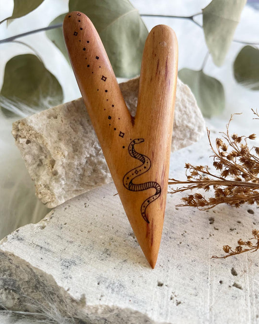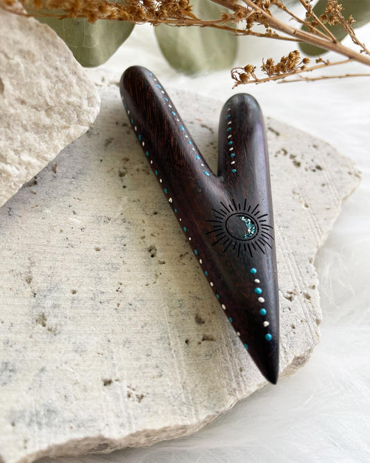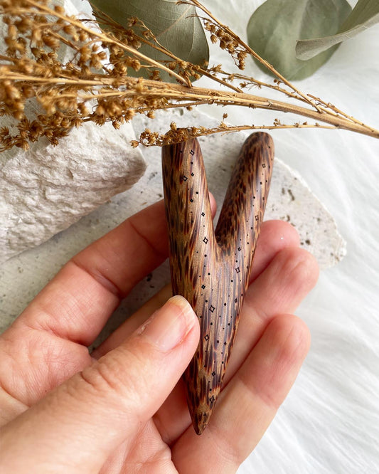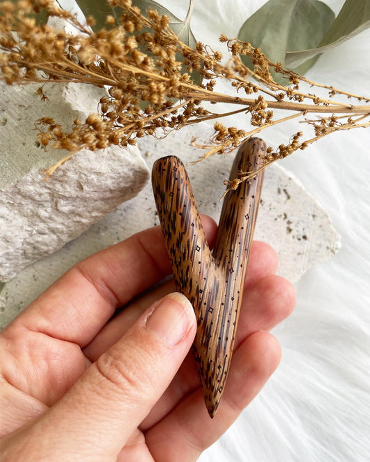 A sacred selection of kuripes, shamanic ceremonial pipes, hapé pipes, tepi's, and other shamanic hapé tools. A Kuripe and Tepi are both used to administer Hapeh. Kuripes are used to self administer hapeh to ourselves, while a Tepi is used to administer hapeh to someone else. Our shamanic tools are all hand-made from a variety of wood options. For a lighter weight wood our Coconut Kuripe is most popular, and our Tamarind Wood Kuripe is most liked for it's denser weight. Both are designed with the same angle, shape and size.