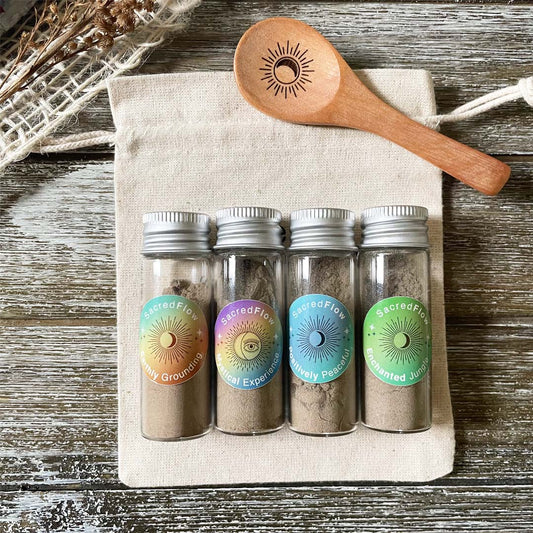 Sacred Flow Sublingual Hapés are hapeh's that are made specifically for sublingual use for a more gentle experience. Our Sublingual Hapé Collection, are our proprietary blends that can only be found at Sacred Flow Studios. They are our most sought after, most popular blends and what we are most known for along with our Specialty Hapé Blends. Hapé is an indigenous, natural plant medicine that helps in our spiritual healing, emotional healing and spiritual awakening. It is a natural anxiety relief tool, natural antidepressant and helps us connect to our hearts and to our spirituality. They are helpful for re-centering and creating internal peace and alignment. To understand how to use them properly, watch our short video here.
