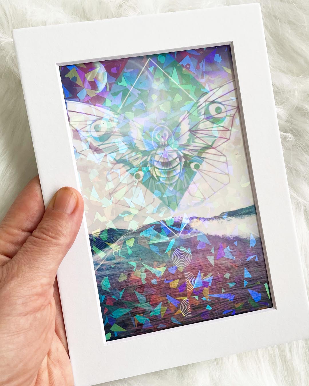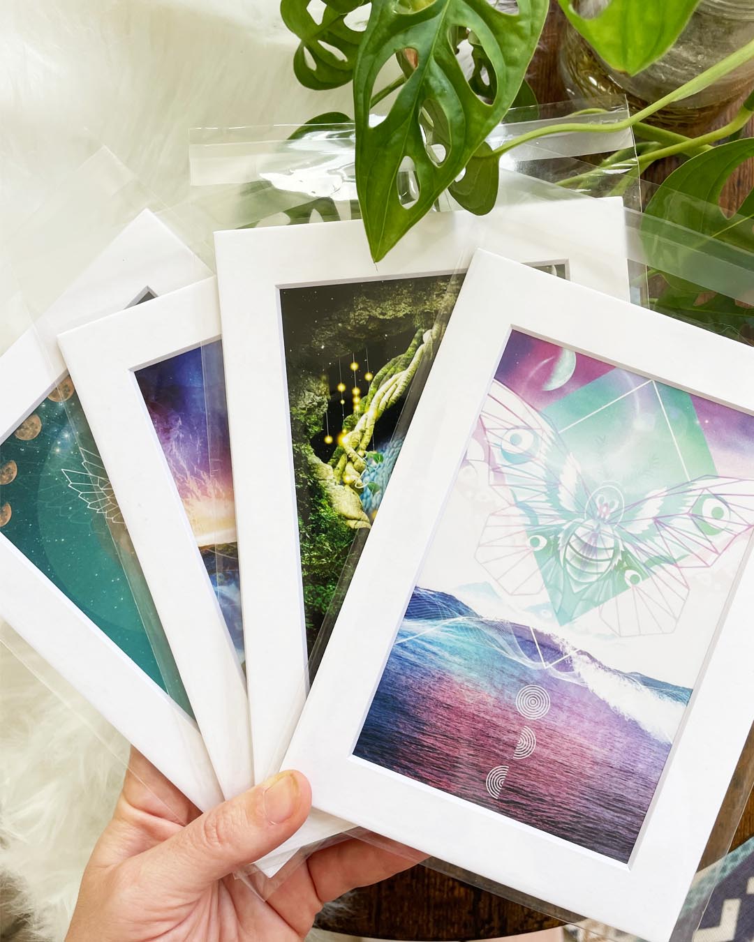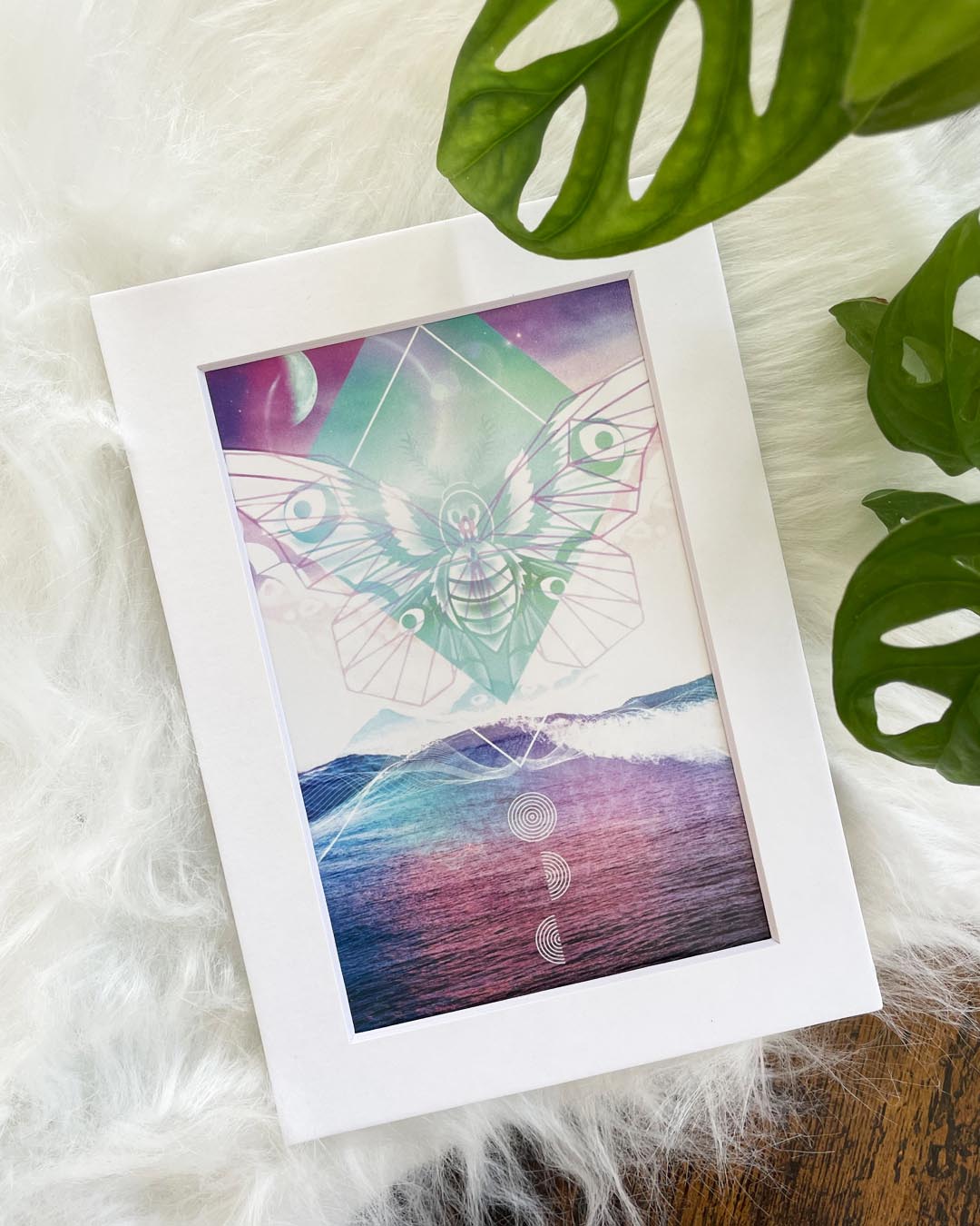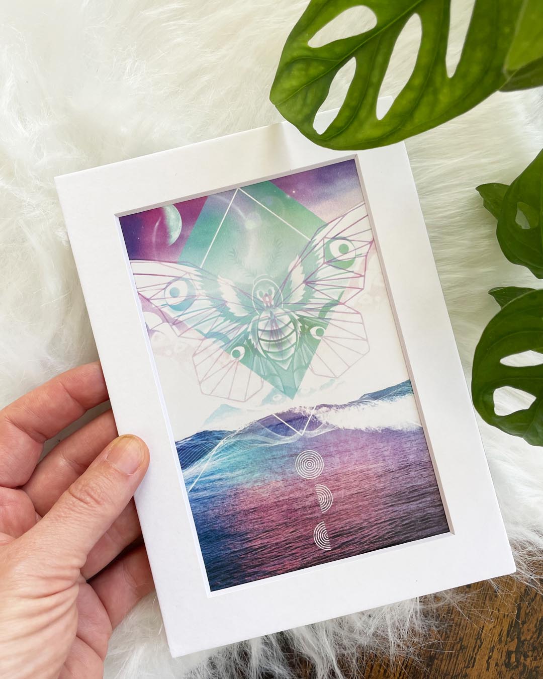 Each Sacred Flow mounted art is mounted on whiteboard, packaged in a plastic-free sleeve, and sent in a sturdy cardboard envelope. We are dedicated to making sure our footprint on this Earth is light and that we are as eco-friendly as possible and plastic free.