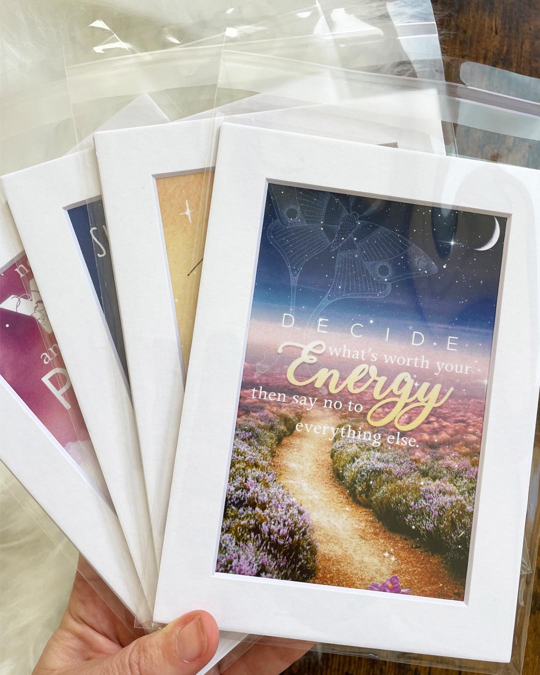 Each Sacred Flow mounted art is mounted on whiteboard, packaged in a plastic-free sleeve, and sent in a sturdy cardboard envelope. We are dedicated to making sure our footprint on this Earth is light and that we are as eco-friendly as possible and plastic free.
