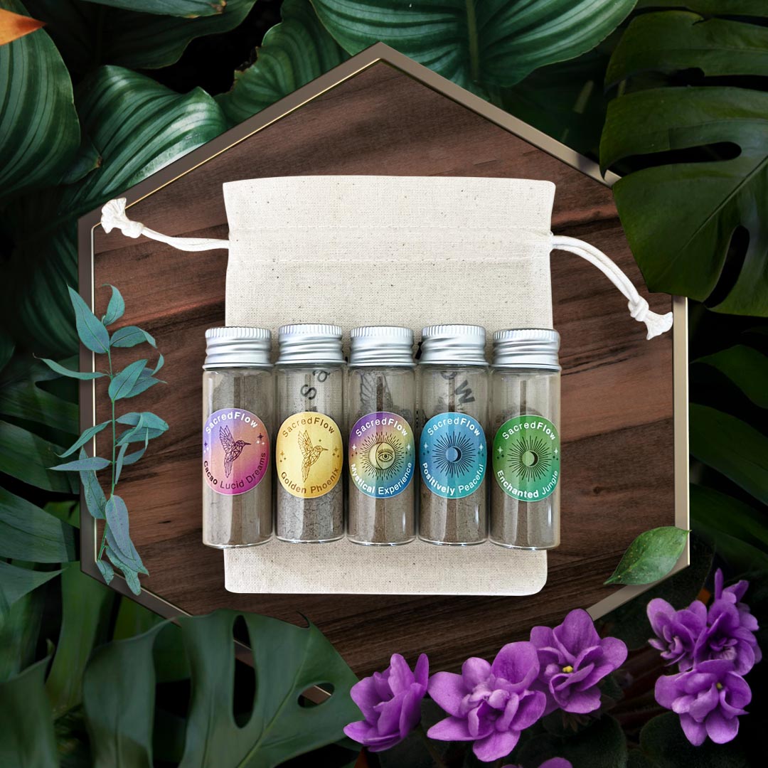Our Gratitude & Magick Bundle has been curated with 5 truly magical Hapés that each carry and ethereal quality to it that transports you into different realms in order for you to receive guidance, messages and clarity. They give you a shift of perspective and a