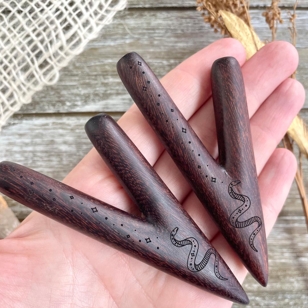 Our Kuripes are created as the perfect tool for your Hapé practice. They're small enough to fit into one's medicine bag or even pocket. The angle of Sacred Flow Kuripes have taken many months to perfect, and we're proud to say that these fit 99% of people who have bought one from us.