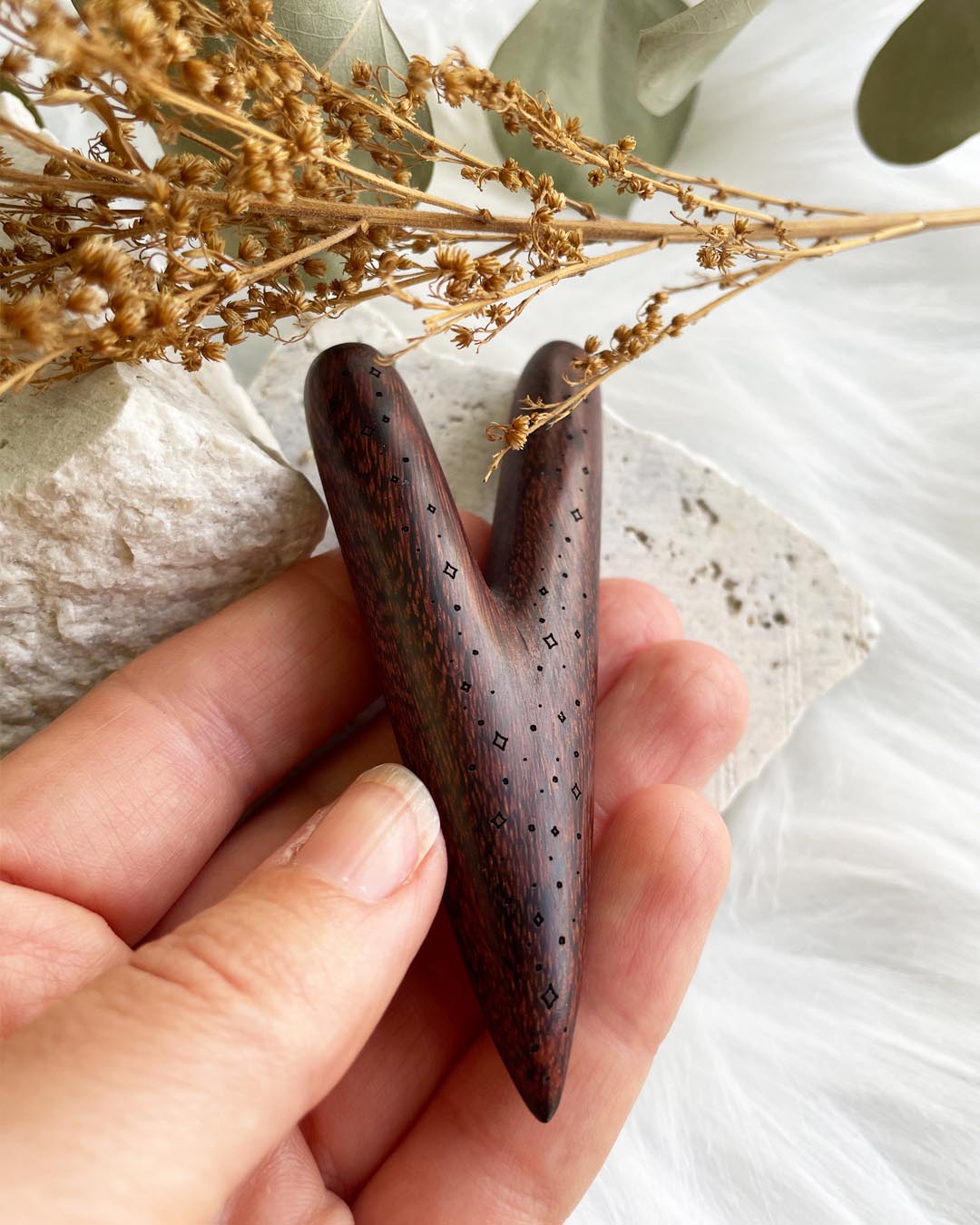 ✨ The back of the kuripe is engraved with stars, a reminder of our connection to everything, that our very being is composed of stardust and pure magic.