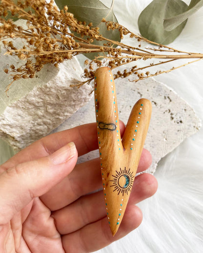 Please keep in mind that each Kuripe is handmade and therefore the finish and color may differ slightly from the photos. Each Kuripe is crafted with reverence, intricately decorated, and created to serve you on your healing journey, as it guides you back home to your heart.