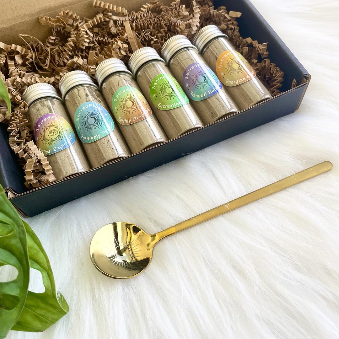 * This does not come with a kuripe. This box contains 6 hapé blends and an engraved stainless steel spoon. If you need a kuripe, please make sure you add that to your cart.
