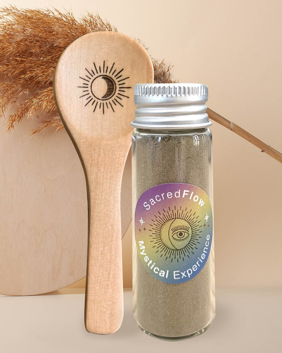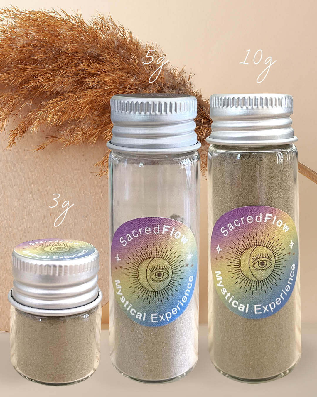 Sacred Flow introduces our proprietary sublingual blend: Mystical Experience. It was designed to be utilized as a sublingual (under the tongue) Hapé, but can also be used in the traditional way with a kuripe.
