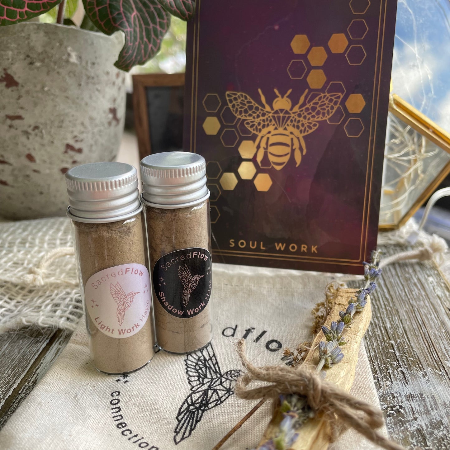 Shadow Work: A strong hapé that carries you into your soul, and allows you to see all angles of yourself, so that you can let go of the things that no longer serve you and allow space for the aspects of yourself that do serve you. It assists you in letting go and in accepting all of you.