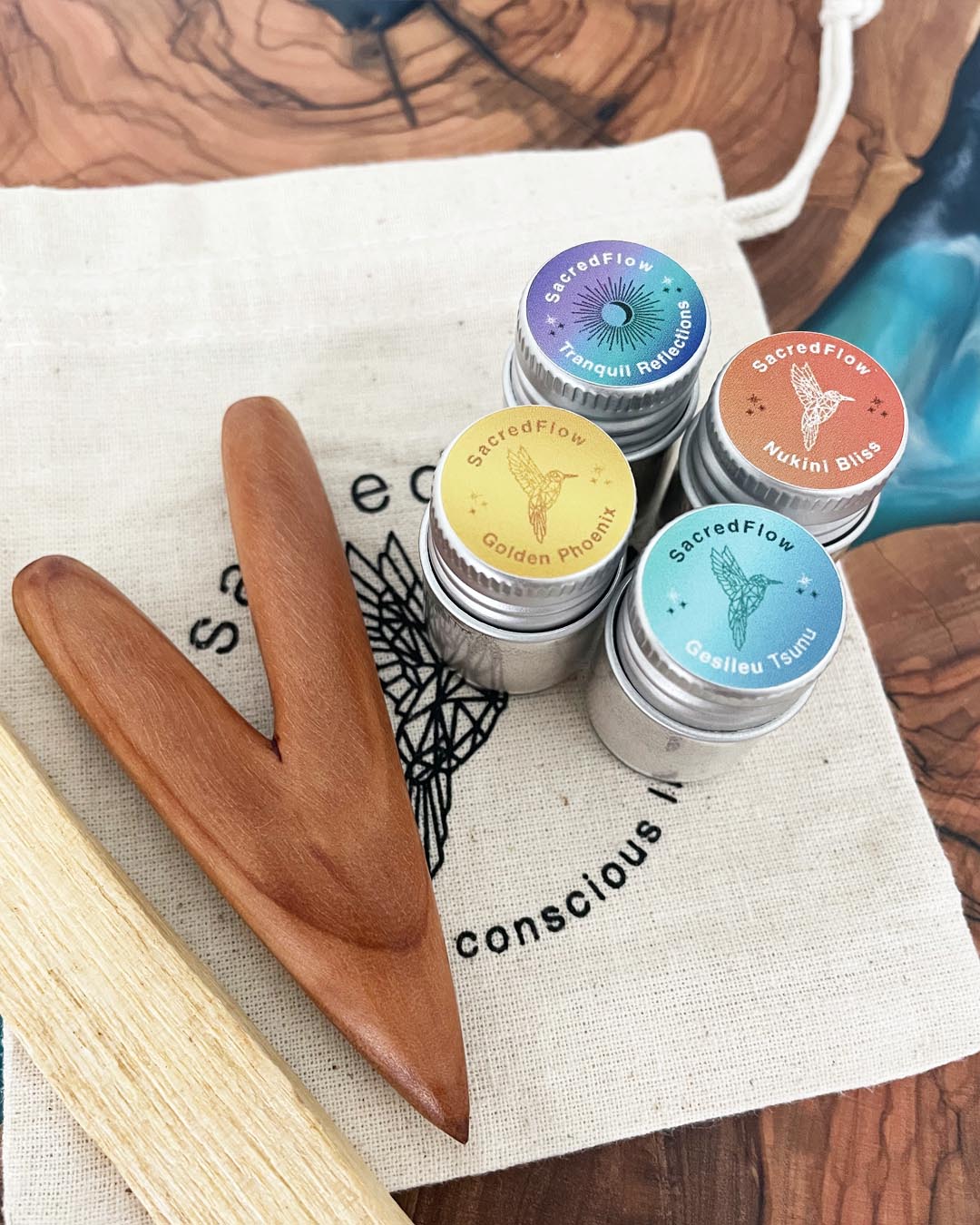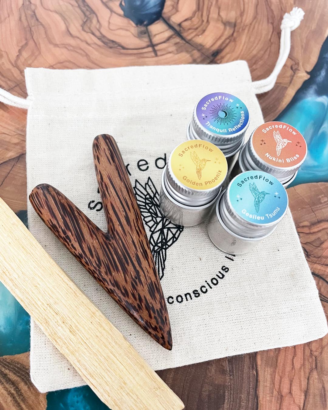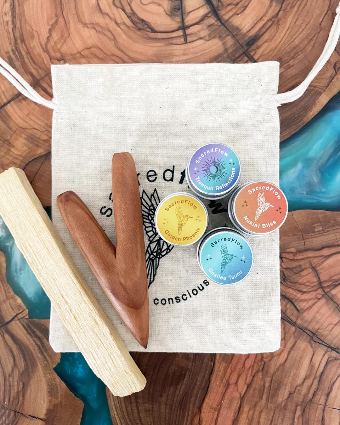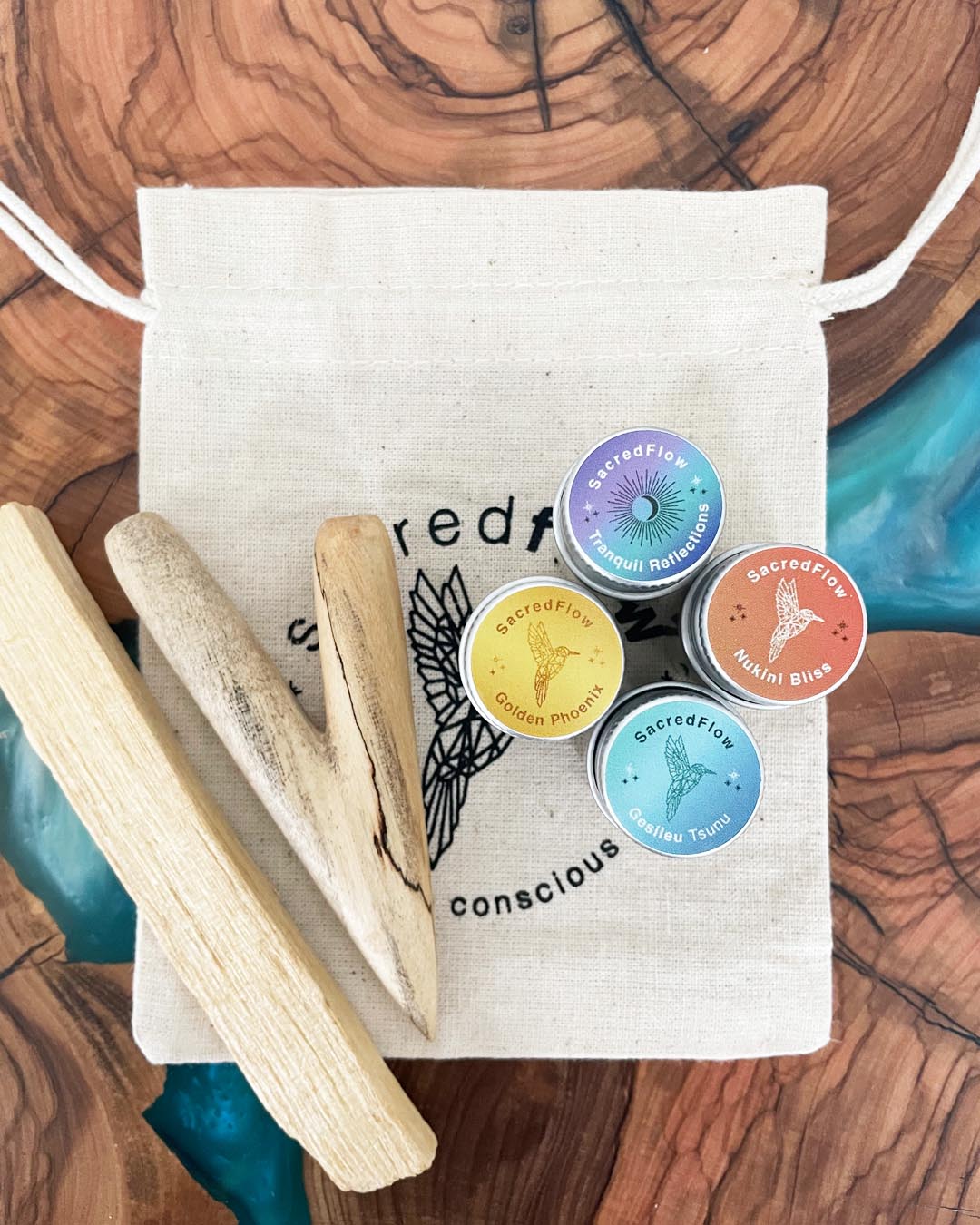 * Each Sacred Flows item comes in an eco-friendly glass container with an aluminum top that's easily reusable, or recyclable. Each order is delivered in a compostable, plastic-free bubble mailer made from plants. We are dedicated to making sure our footprint on this Earth is light and that we are as eco-friendly and plastic free as possible!