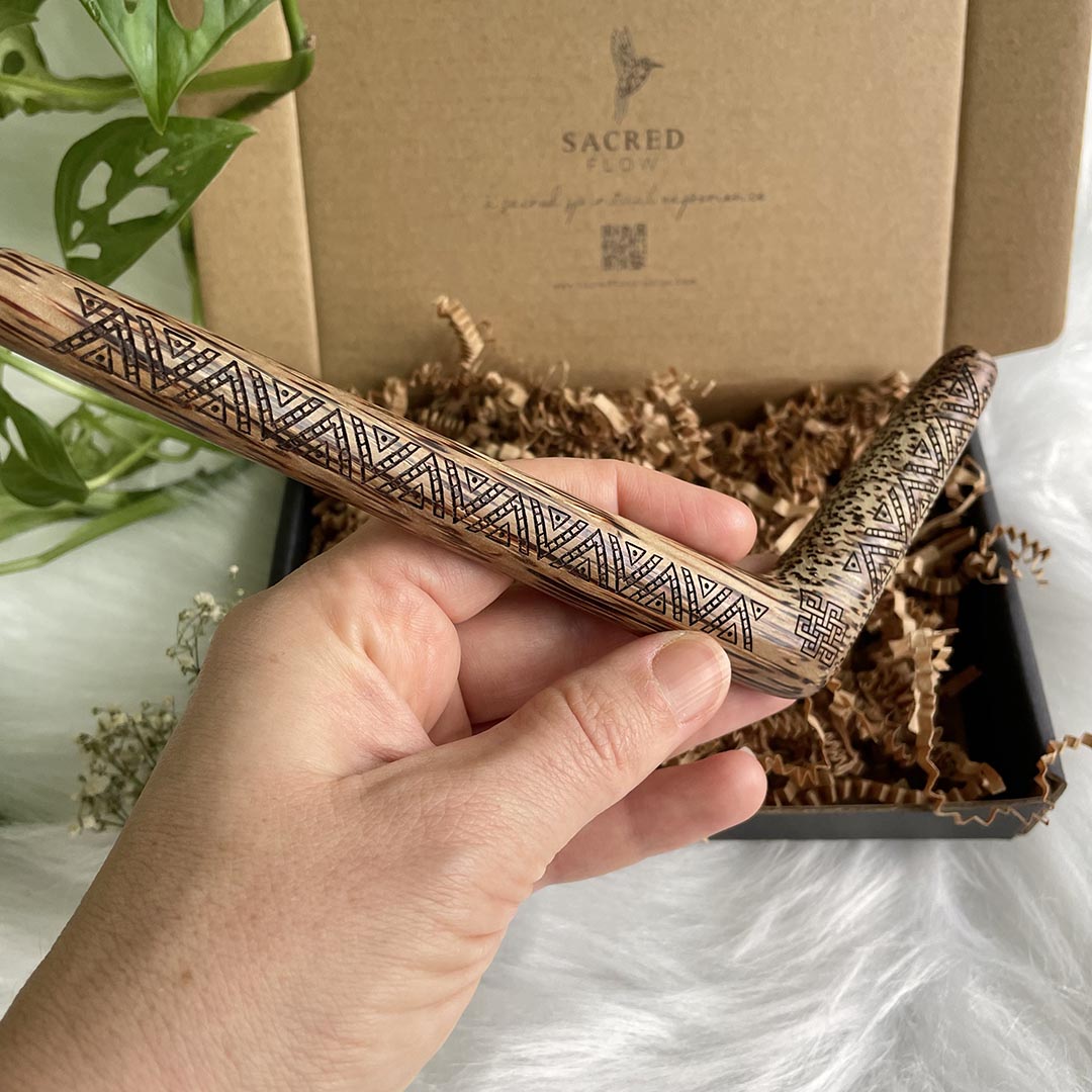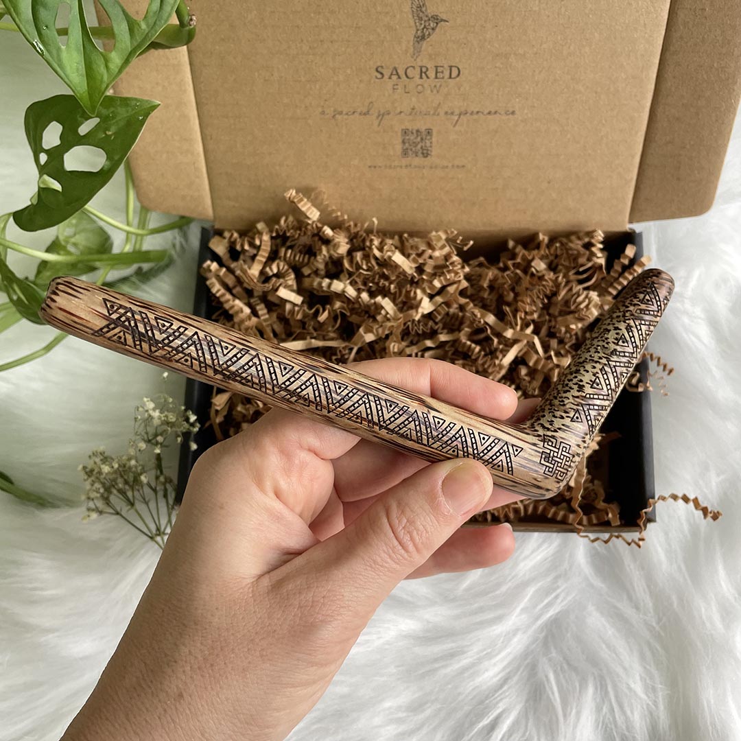 A Tepi is utilized to administer Hapé from the medicine carrier to the receiver, always done in a respectful, sacred and safe manner.