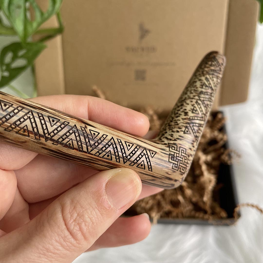 Our Sacred Flow Tribal Tepis are handmade with love, using one block of wood, etched with a design of connection and unity.