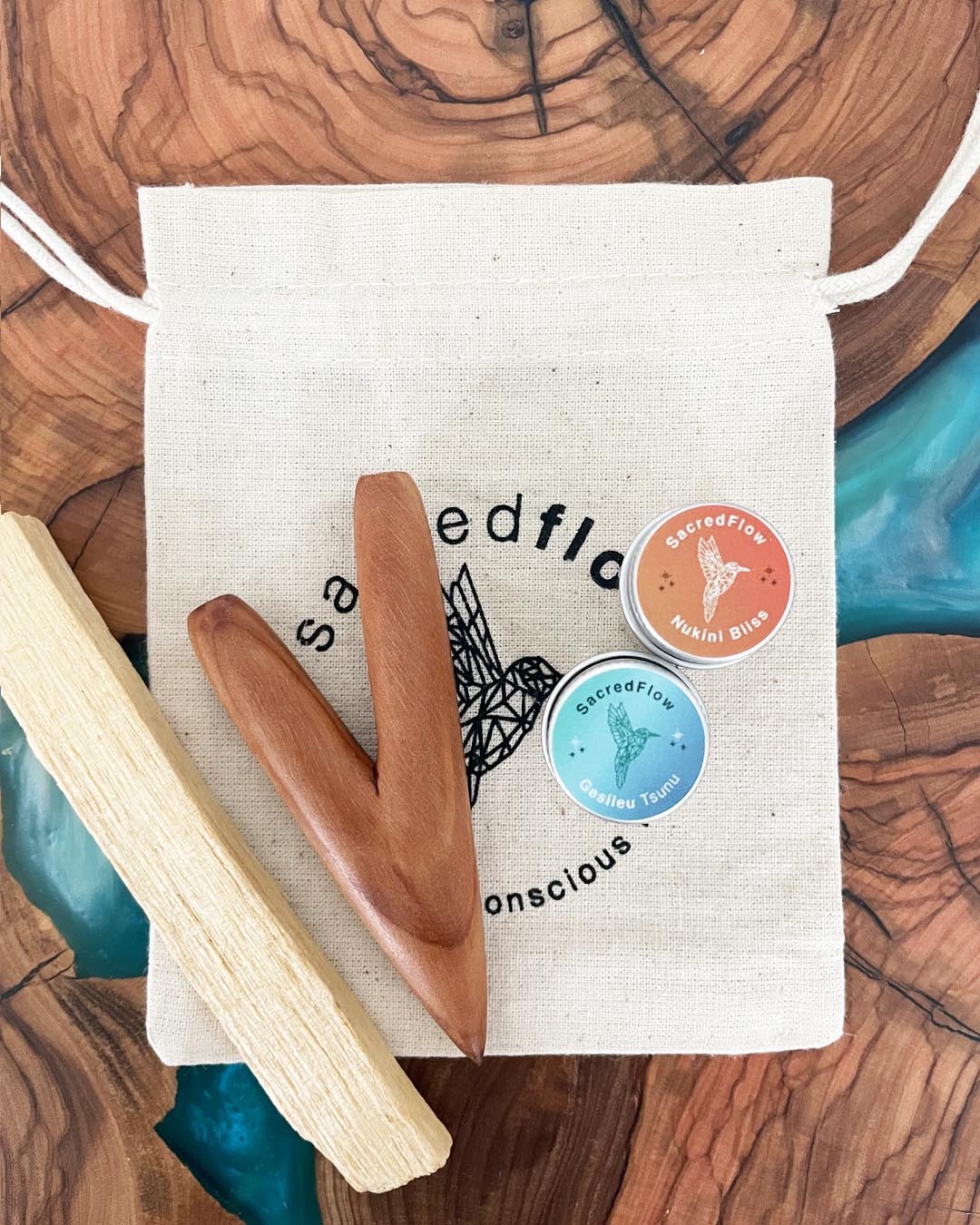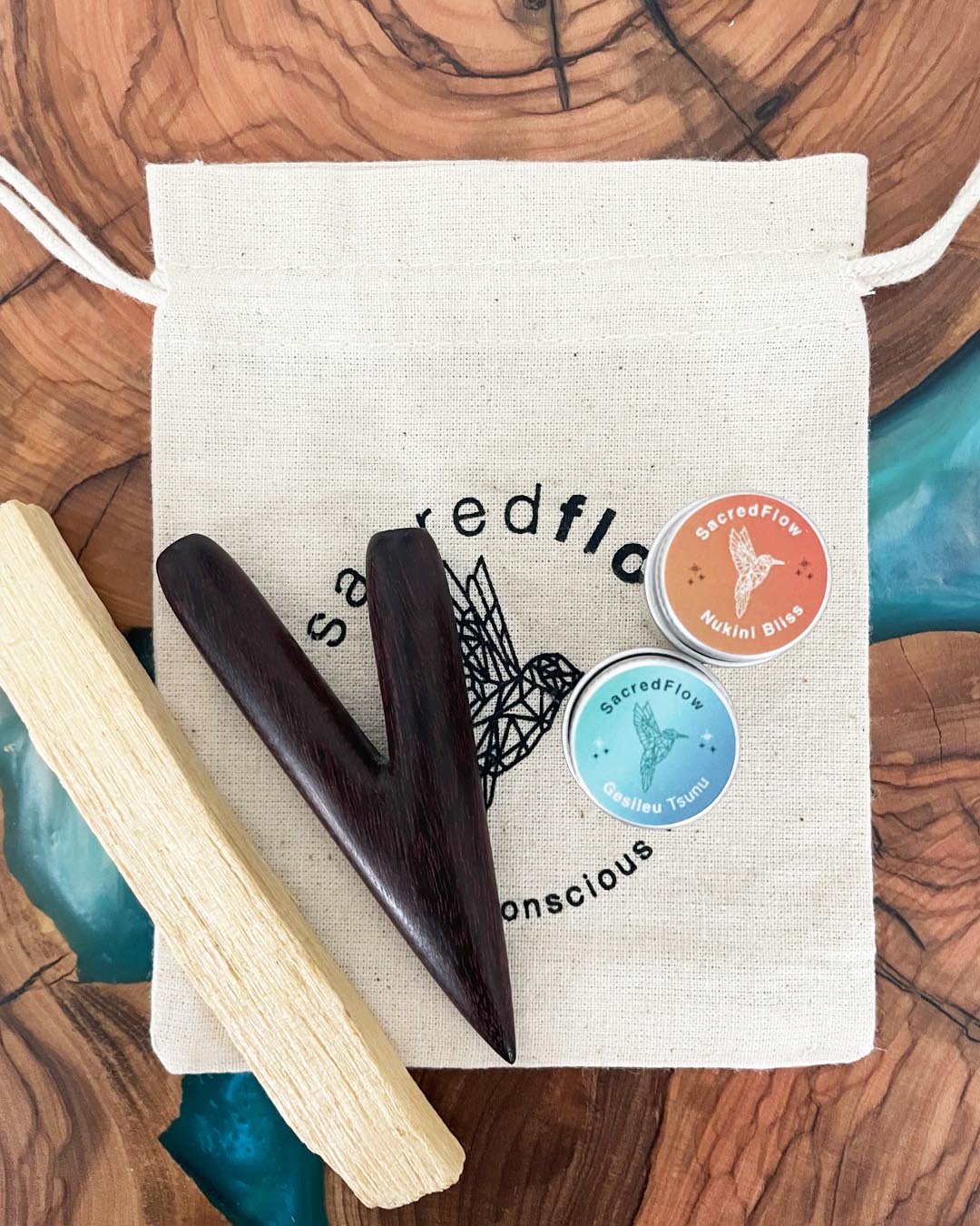 * Each Sacred Flows item comes in an eco-friendly glass container with an aluminum top that's easily reusable, or recyclable. Each order is delivered in a compostable, plastic-free bubble mailer made from plants. We are dedicated to making sure our footprint on this Earth is light and that we are as eco-friendly and plastic free as possible!